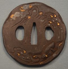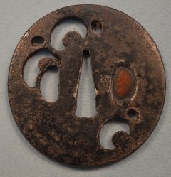 9-16★室町時代脇差、時代拵/白鮫黒糸巻、 赤銅魚子梅花人物図縁頭、鉄丸鍔金・銀線象嵌、黒塗鞘、金茶下緒。 鎬造り、銅/銀着ハバキ、大磨上無銘、棒樋、互の目乱れ。 室町時代脇差 時代拵 大磨上無銘 大磨上無銘 コレクター向 大奉仕 初回売出し33万円の品 さらに1割引 29万7千円(税込326,700円)