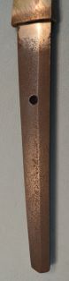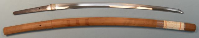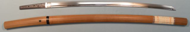 9-23★室町時代打刀、研上り白鞘、大磨上無銘、鎬造り、 銅/銀着ハバキ、棒樋、浅いのたれ刃乱れ交り。保存状態極上品。 長寸刀、鋭利で軽量、棒樋でバランス良く振り易い。武道用に最適。 室町時代打刀 白鞘 大磨上無銘 保存状態極上品 大奉仕 初回売出し32万円の品 さらに1割引 28万8千円(税込316,800円)