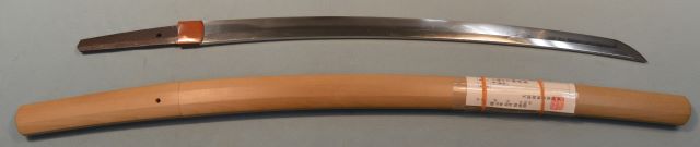 1-21★室町時代打刀、研上り白鞘、大磨上無銘、横手、 帽子のある菖蒲造り、腰樋、細樋、互の目乱れ。 銅ハバキ、「末備前」日本美術刀剣保存協会・保存刀剣。 室町時代打刀 白鞘 「末備前」日刀保・保存刀剣 貴重資料 大奉仕 50万円(税込55万円)