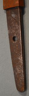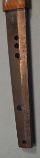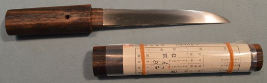 4-27★江戸時代短刀、木製(紫檀)白鞘、鞘付ハバキ、 平造り、(大型小柄)、互の目乱れ。 無銘、短刀として登録証付。貴重資料。 江戸時代短刀 木鞘 小型軽量短刀(大型の小柄) 貴重資料 今月のお買得品 6万円(税込66,000円)