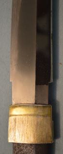 11-29★鎌倉時代打刀、研上り白鞘、鎬造り、 銅/真鍮ハバキ、鎬筋、小互の目乱れ。 金象嵌銘「左」(未鑑定) 鎌倉時代打刀 白鞘 金象嵌銘「左」珍品 貴重資料 大奉仕 70万円(税込77万円)