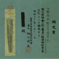11-19★室町時代打刀、研上り白鞘、大磨上無銘、 鎬造り、銅ハバキ、浅いのたれ刃、棒樋。 「加州晃光」日本美術刀剣保存協会・特別貴重刀剣。 ○晃光―二代、室町時代応永頃(1394~1427年)、加賀。 南左馬助。業物。 室町時代打刀 白鞘 「加州晃光」日刀保・特別貴重刀剣 大奉仕 24万円(税込264,000円)