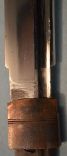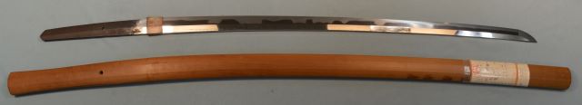 11-16★江戸時代太刀、研上り白鞘、鎬造り、 銅/銀着2重ハバキ、大互の目乱れ。 銘「肥前住播磨大掾藤原忠国」(未鑑定) 江戸時代太刀 白鞘 銘「肥前住播磨大掾藤原忠国」 大奉仕 36万円(税込396,000円)