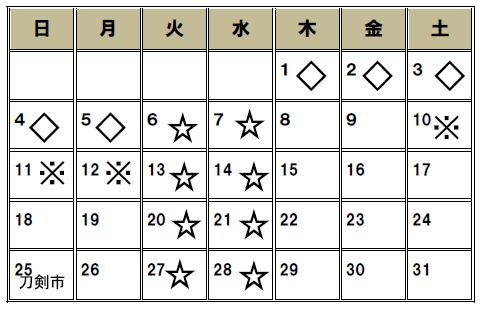刀剣会等の都合により、休業する場合があります。