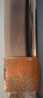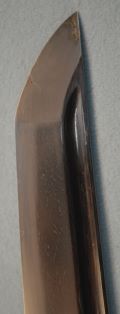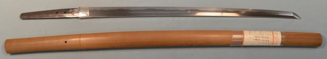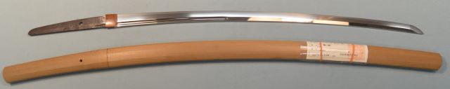 9-23★室町時代打刀、研上り白鞘、大磨上無銘、鎬造り、 銅/銀着ハバキ、棒樋、浅いのたれ刃乱れ交り。保存状態極上品。 長寸刀、鋭利で軽量、棒樋でバランス良く振り易い。武道用に最適。 室町時代打刀 白鞘 大磨上無銘 保存状態極上品 大奉仕 初回売出し32万円の品 さらに1割引 28万8千円(税込316,800円)