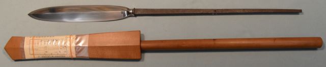 10-7★江戸時代槍、研上り白鞘、笹穂槍、浅いのたれ刃。 銘「康継於武州江戸作」日本美術刀剣保存協会・特別貴重刀剣。 ○康継―江戸時代慶長頃(1596~1614年)、武蔵。千手院広長の子。 越前一乗谷から北の庄に移り、後出府し幕府御用鍛冶。 徳川家康より徳川家の御用鍛冶職に取り立てられた。 江戸時代槍 研上り白鞘 笹穂槍 銘「康継於武州江戸作」 特別貴重 大奉仕 25万円(税込275,000円)