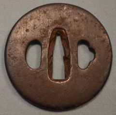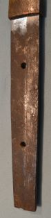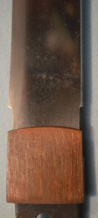 10-8★室町時代短刀、時代拵/合口短刀、木製革巻風柄、 変り丸鉄目貫、真鍮コウモリ図小柄、 朱変り塗鞘、変り下緒。平造り、銅ハバキ、中直刃。 銘「長船宗久」(未鑑定) 室町時代短刀 合口時代拵 銘「長船宗久」在銘 コレクター向 大奉仕 20万円(税込22万円)