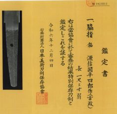 8-11★室町時代脇差、研上り白鞘、菖蒲造り、互の目乱れ。 銘「源信國平四郎作」日本美術刀剣保存協会・特別貴重、 特別保存刀剣。(吉政) 室町時代脇差 白鞘 銘「源信國平四郎作」(吉政) 特別保存 大奉仕 初回売出し44万円の品 さらに1割引 39万6千円(税込435,600円)