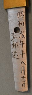 8-7★現代刀短刀、研上り白鞘、平造り、内反り有、中直刃。 銅/金着2重ハバキ、 銘「昭和戌午年八月吉日 弘邦造・為石原明氏作之」 ○弘邦―広木順一 神奈川県、現代刀匠、厚木市、 佐藤寒山先生命銘、隅谷正峯門人。 現代刀短刀 注文打 銘「弘邦」現代刀匠 大奉仕 初回売出し38万円の品 さらに1割引 34万2千円(税込376,200円)