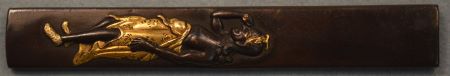 ⑬縁頭 人物図/銘 宗与(花押) 大奉仕80,000円(税込88,000円) 縁:高さ10.82㎜ タテ37.23㎜ ヨコ21.29㎜ 頭:高さ7.57㎜ タテ32.85㎜ ヨコ18.90㎜ |