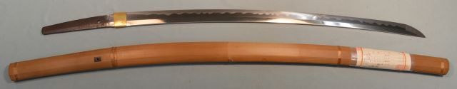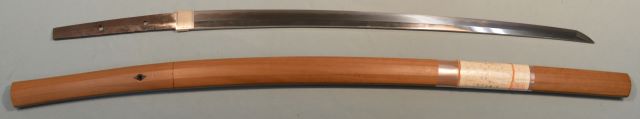 4-23★室町時代打刀、研上り白鞘、銅/金着ハバキ、互の目乱れ。 鎬巾やや狭く鎬筋高い。重ね厚く見巾広く豪壮な刀、 銘「兼定」(未鑑定)。 室町時代打刀 白鞘 銘「兼定」在銘 武道向豪壮な刀 大奉仕 76万円(税込836,000円)