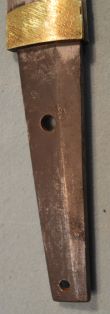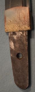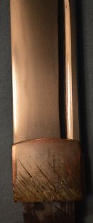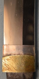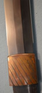 4-31★室町時代脇差、研済白鞘、菖蒲造り、 銅/金・銀着2重ハバキ。のたれ刃。大磨上無銘。 室町時代脇差 白鞘 菖蒲造り 軽量鋭利な薄刃仕立て 今月のお買得品 11万円(税込121,000円)